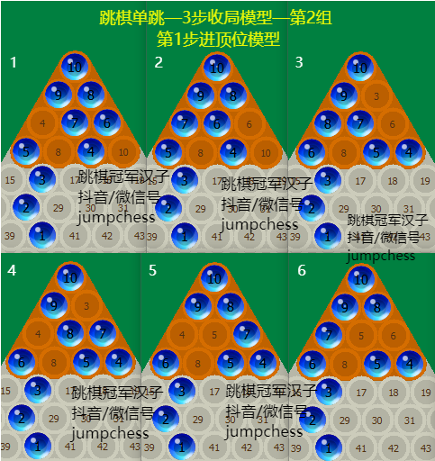 图1和图6常见;其他冷门,高手在实战中偶尔形成。图1-图6的转变就是不断调整1步,保持基本步不变的演化过程,当然有些步骤可以跳跃,如图1可以调整蓝8直接形成图5。未来学习更高难度的双人对峙收局时或用到。